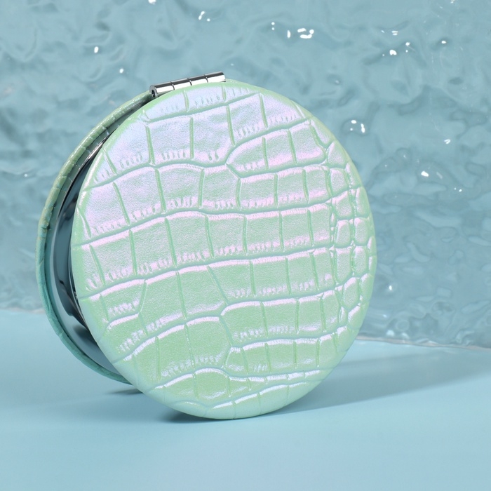 Зеркало складное «Крокодил», d = 7,5 см, цвет жёлтый/зелёный