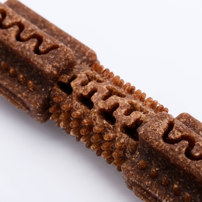 Массажный эффект: Поверхность игрушки имеет специальную текстуру, которая при использовании массирует десны и зубы питомца, способствуя гигиене полости рта и уменьшению зубного налета.
