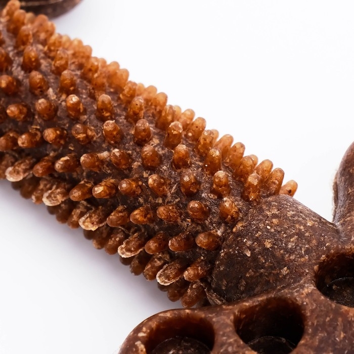 Бамбук: Натуральный и экологически чистый материал, который добавляет прочности игрушке. Он мягче, чем многие другие материалы, что делает его безопасным для зубов собаки и полезным для здоровья десен.