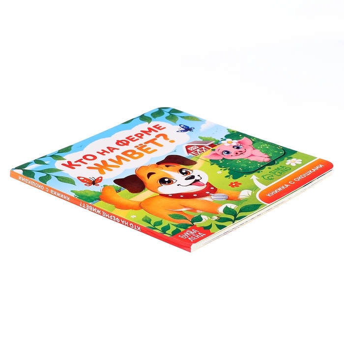 Книга картонная с окошками "Кто на ферме живёт?", 12 стр.