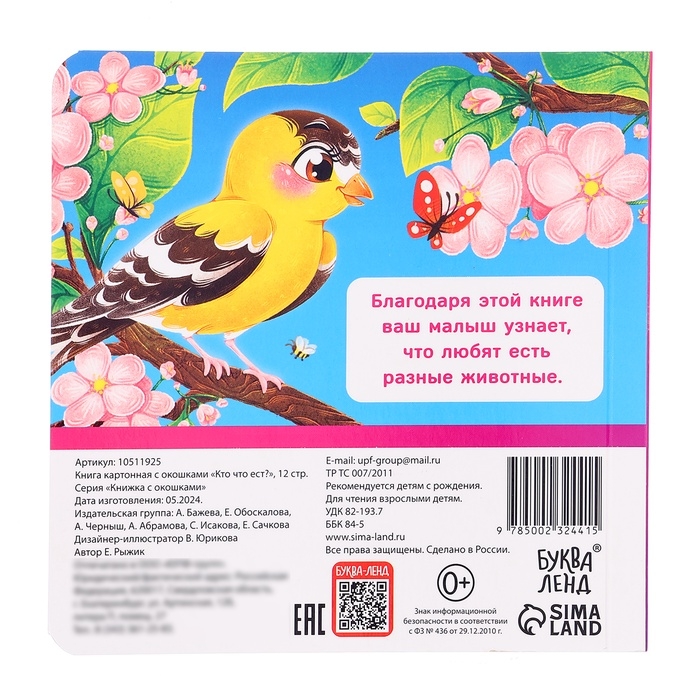Книга картонная с окошками "Кто что ест?", 12 стр.