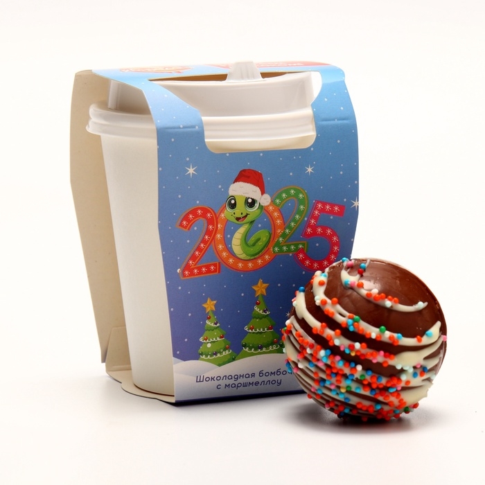 Шоколадная бомбочка с маршмеллоу "Бомбочка 2025" в стаканчике, 30 г