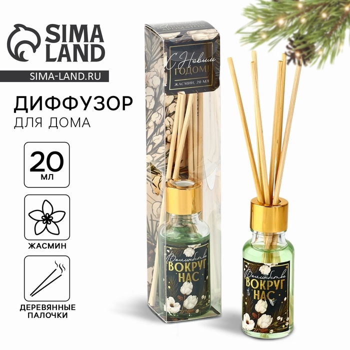 Аромадиффузор ароматический палочки «Новогодняя коллекция: Волшебство вокруг нас», жасмин, 20 мл.