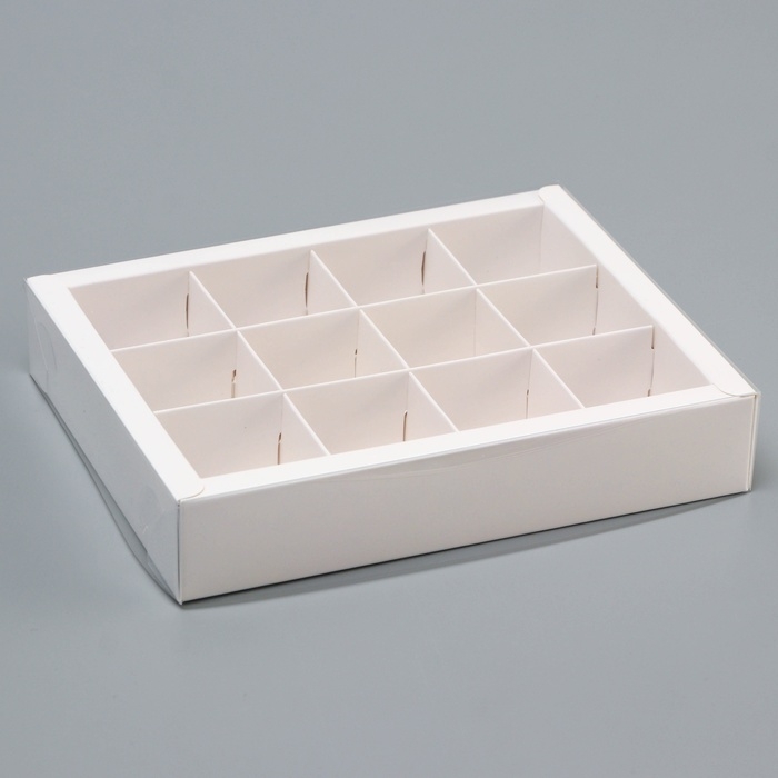 Коробка для 12 конфет размером 19 х 15 х 3,5 см с прозрачной крышкой — идеальное решение для стильной и эффектной упаковки.