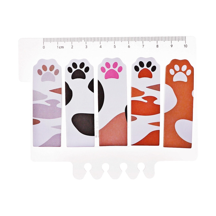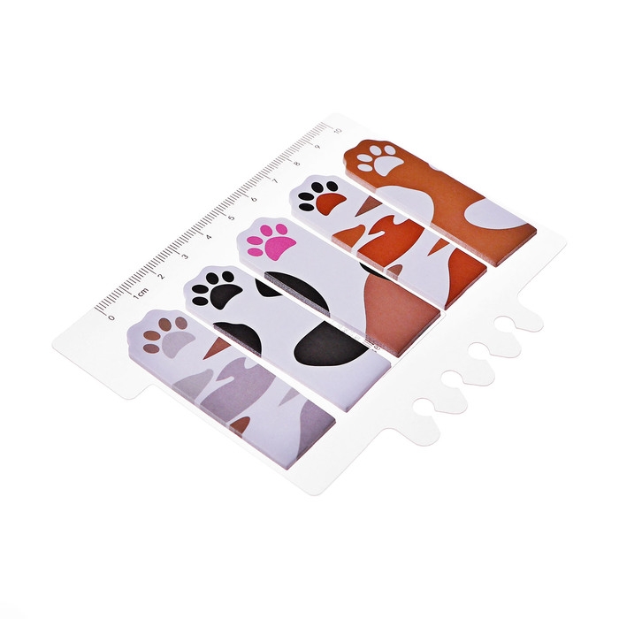 Блок-закладки с липким краем бумага Лапки 20л*5 цветов, 20мм*62мм, с линейкой 10 см