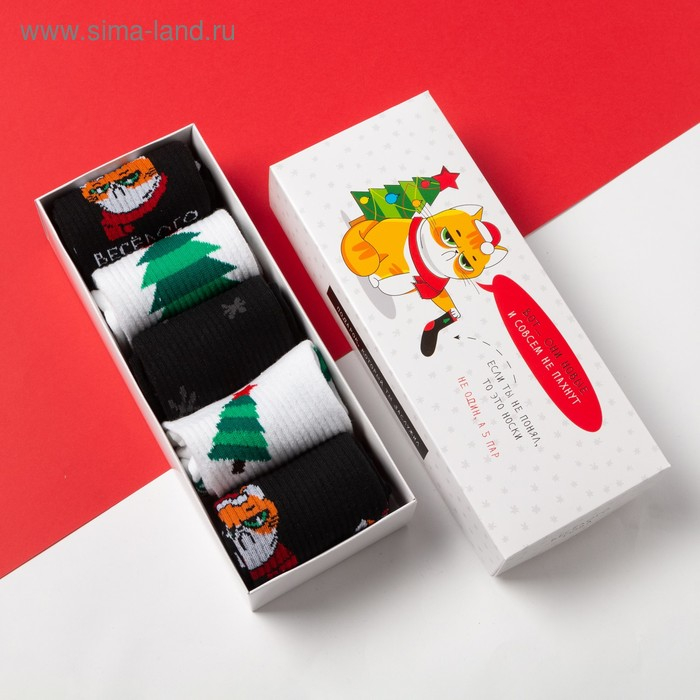 Набор мужских носков 5 пар "Весёлого года" 41-44 (27-29 см)