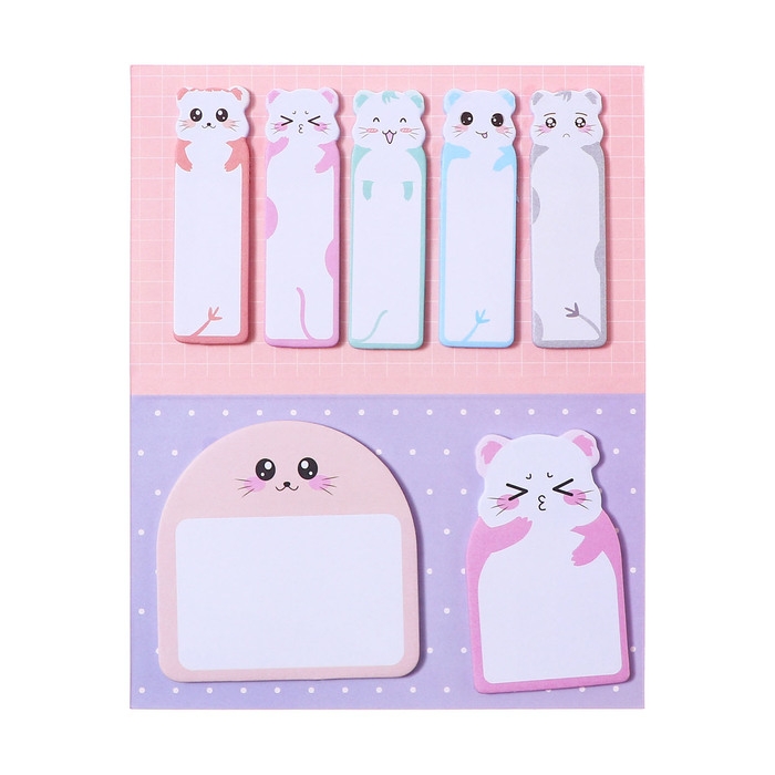 Блок-закладки с липким краем из бумаги, 20л*7 цветов, 57*17мм, 60*60 мм, 57*36мм, Мышки