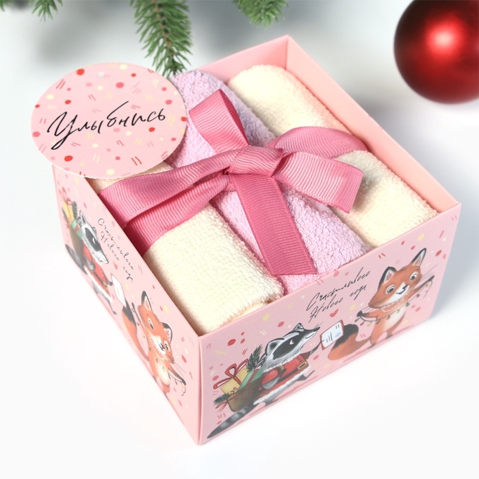Набор махровых полотенец "Енот и лисичка" 30х30 см - 3 шт, хлопок 340гр/м2