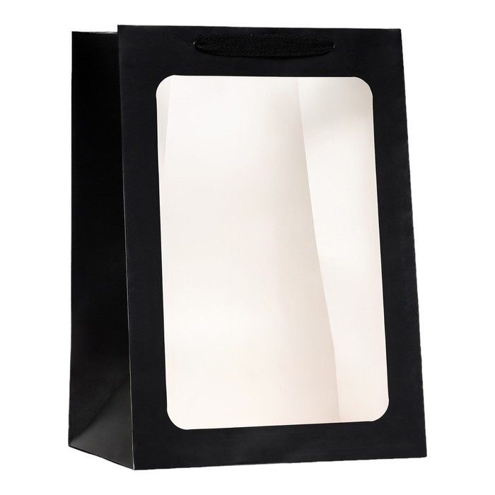 Пакет подарочный, с окном, 35 х 25 х 18 см, черный, 1шт.