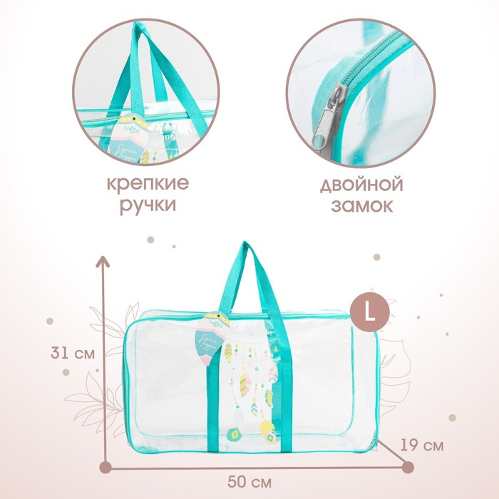 Сумка в роддом «Перья», размер 50х31 см, до 10 кг., цвет прозрачный/бирюзовый, Mum&Baby