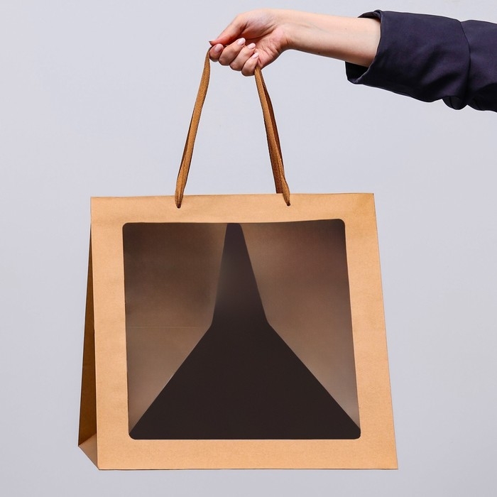 Пакет крафт с квадратным дном и окном 40 Х 40 Х 40 см Крафт, 1шт.