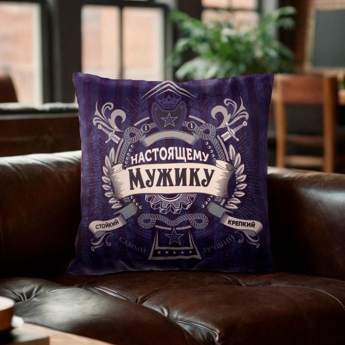 Наволочка декоративная Этель "Настоящему мужчине" 40х40 см, велюр, 100% п/э