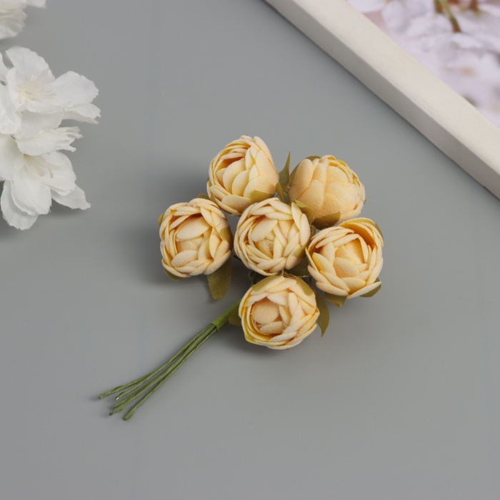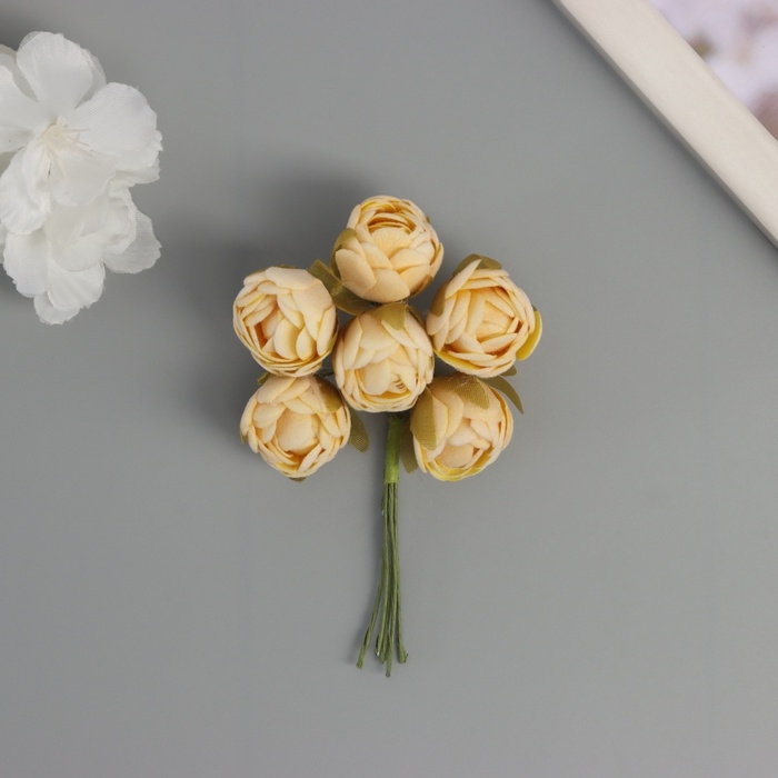 Декор для творчества "Пионы" жёлтые (1 набор=1 букет) в букете 6 шт 2,5х10,5 см