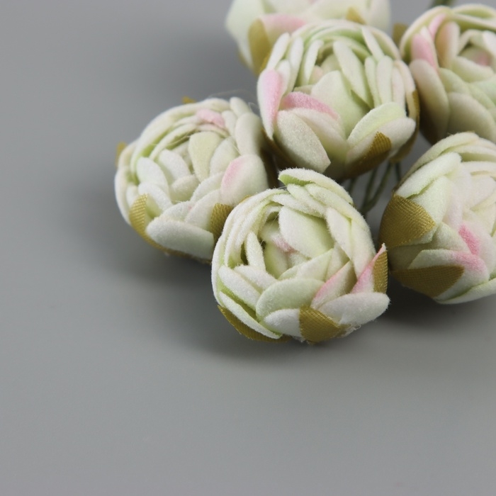 Декор для творчества "Пионы" бело-зелёные (1 набор=1 букет) в букете 6 шт 2,5х10,5 см