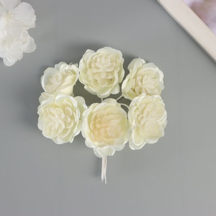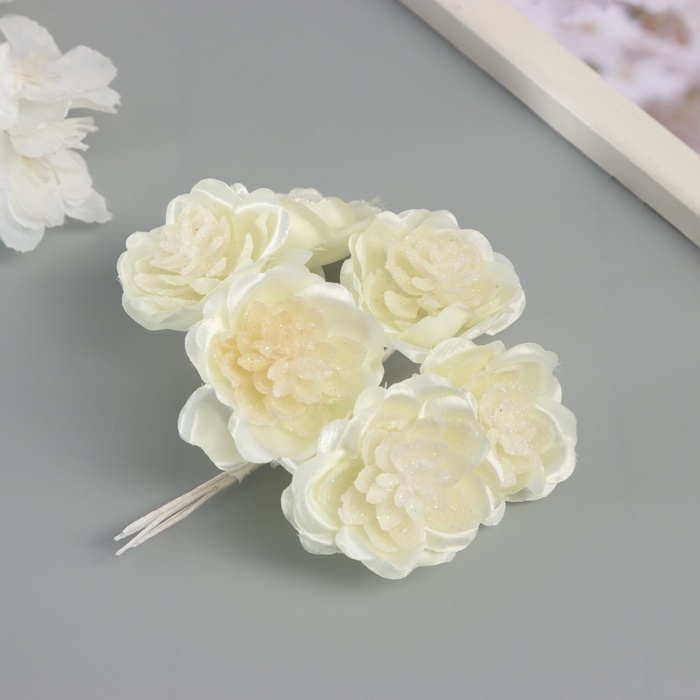 Декор для творчества "Камелия" молочный (1 набор=1 букет) в букете 6 шт 4х11 см