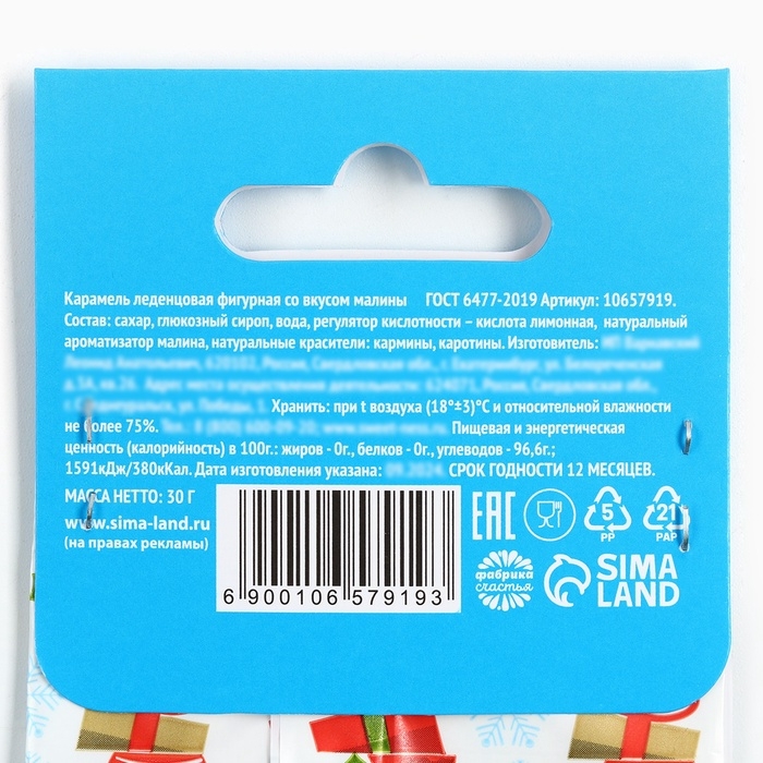 Новый год! Леденцы в пакете с европодвесом «С новым годом», вкус малина, 30 г