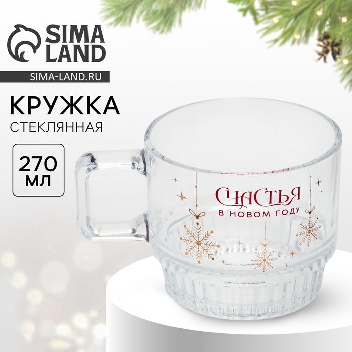Новый год. Кружка стеклянная «Счастья», 270 мл