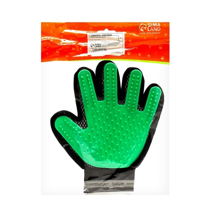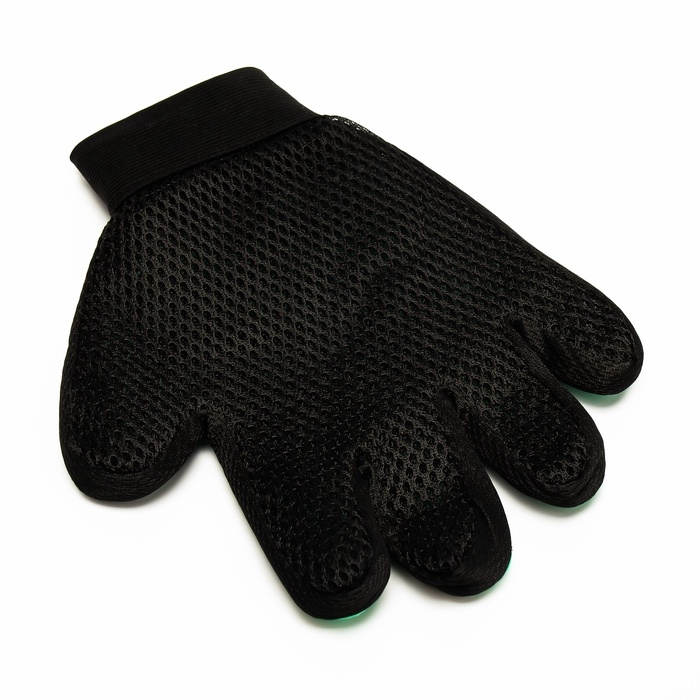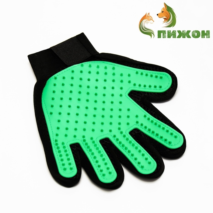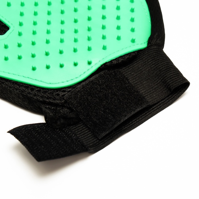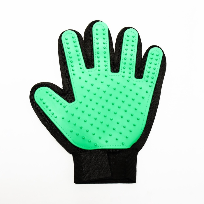Перчатка-щетка для шерсти на левую руку из неопрена с удлиненными зубчиками, зелёная