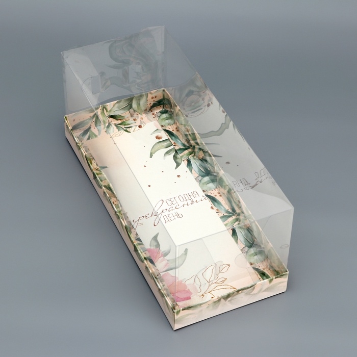 Коробка с прозрачной крышкой под рулет, "Подарок для тебя", 30 х 12 х 12 см. Кондитерская упаковка