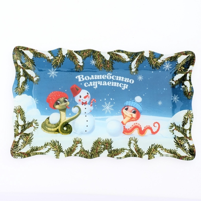 Блюдо новогоднее стеклянное «Волшебство случается», 24,6 х 14,7 см