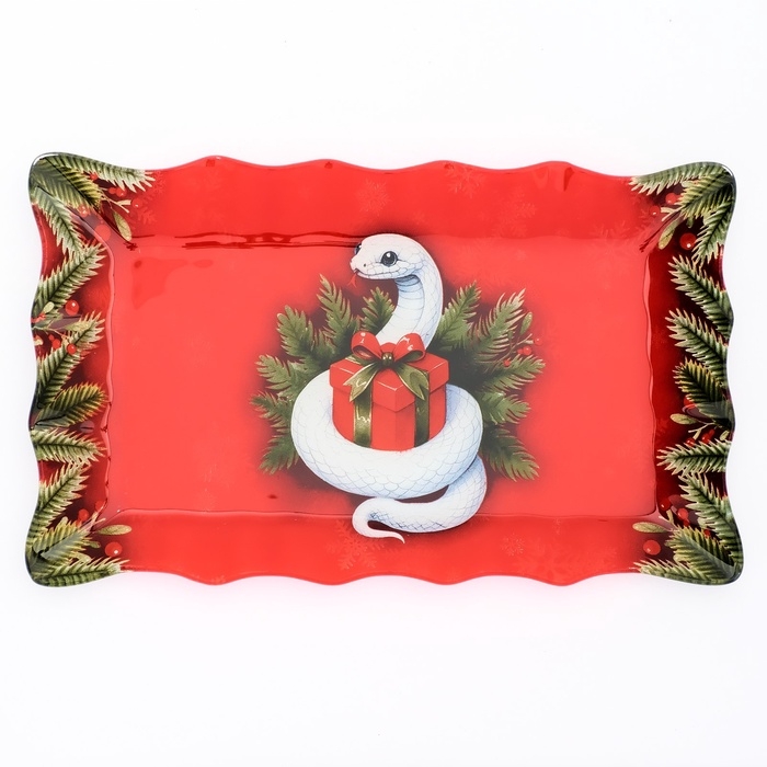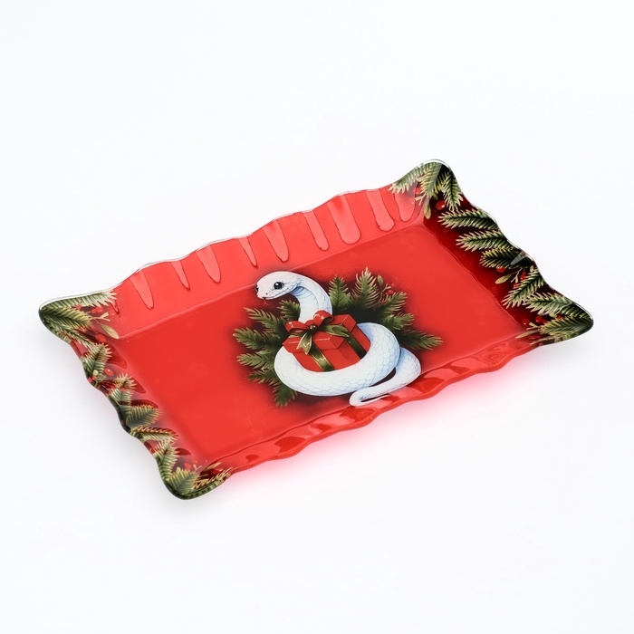 Блюдо новогоднее стеклянное «Новогодняя змейка», 24,6 х 14,7 см