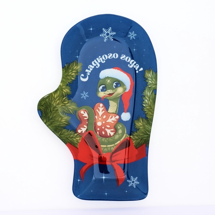 Блюдо руковица новогоднее стеклянное «Сладкого года!», 22,5 × 14 × 2 см