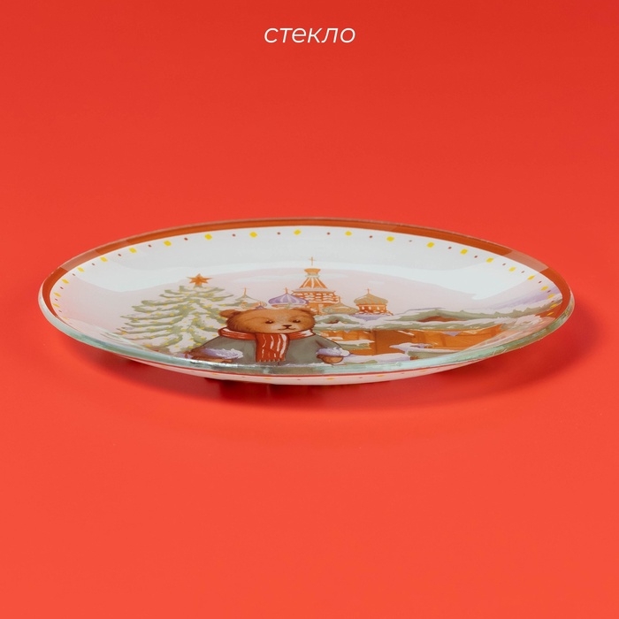 Блюдо сервировочное стеклянное «Зимний медвежонок. Ёлка», d=19 см