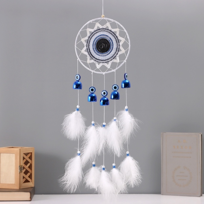 Ловец снов с музыкой ветра "Солнце" с перьями 5 колокольчиков 15х55 см
