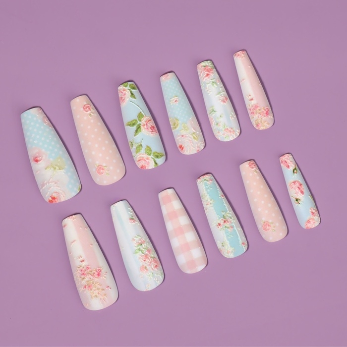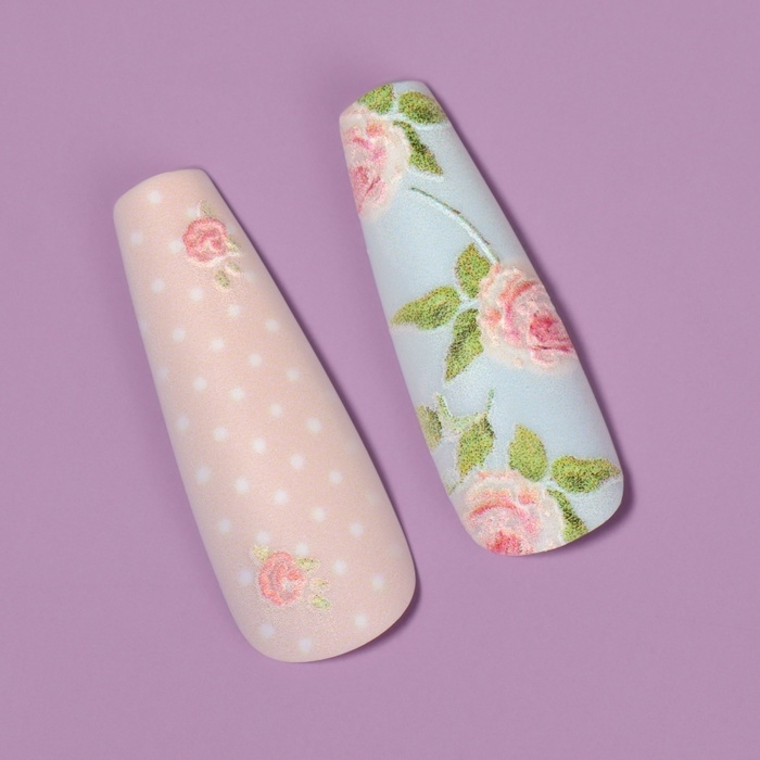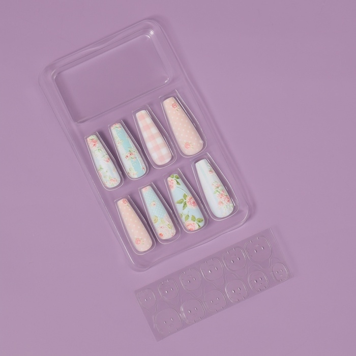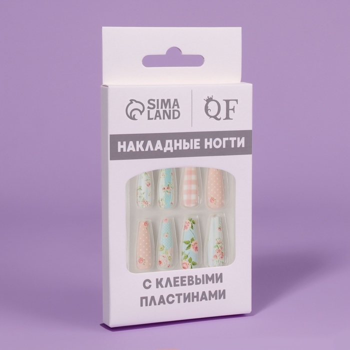 Ногти накладные с кл пластинами 12шт Прованс балерина беж/голуб к/кор QF