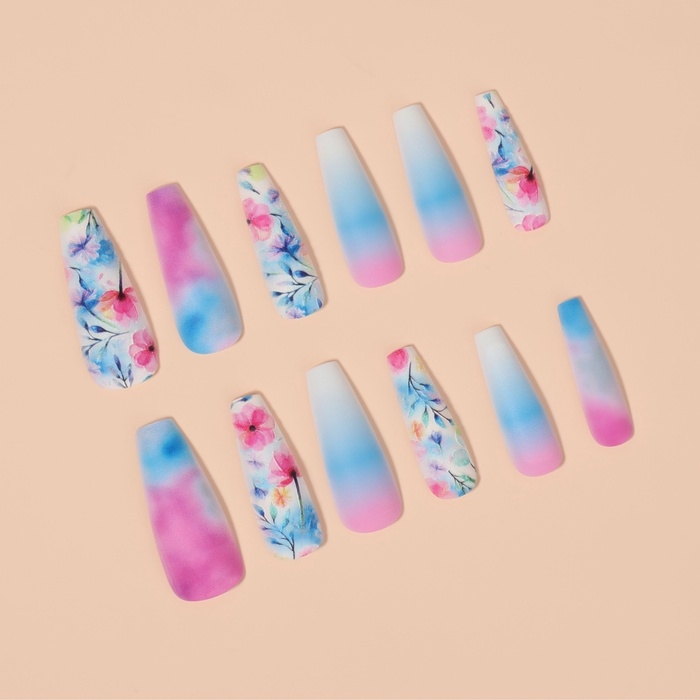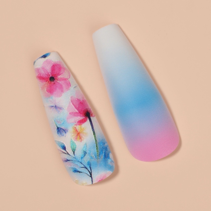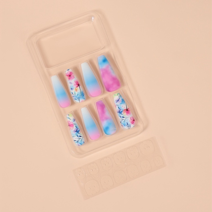Ногти накладные с кл пластинами 12шт Море балерина голуб/роз/бел к/кор QF