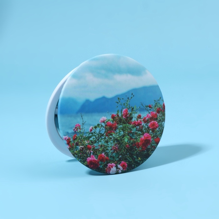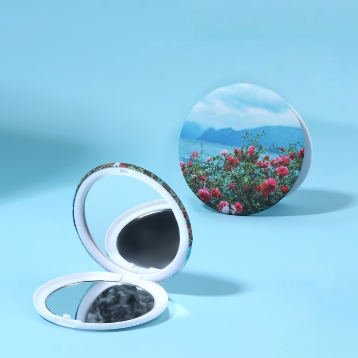 Зеркало складное (2) с/увел ПЛЯЖ d7.5см пластик/бумага цветы пакет QF