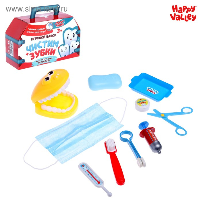 В набор входят инструменты, маска. Челюсть открывается, зубы не съёмные. Ребёнок узнает о строении челюсти, названия зубов и правила гигиены полости рта.