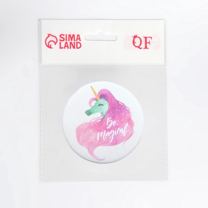 Зеркало складное (2) б/увел ЕДИНОРОГИ d7,5см пластик/бумага розов пакет QF