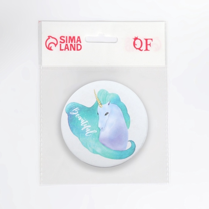 Зеркало складное (2) б/увел ЕДИНОРОГИ d7,5см пластик/бумага бирюз пакет QF