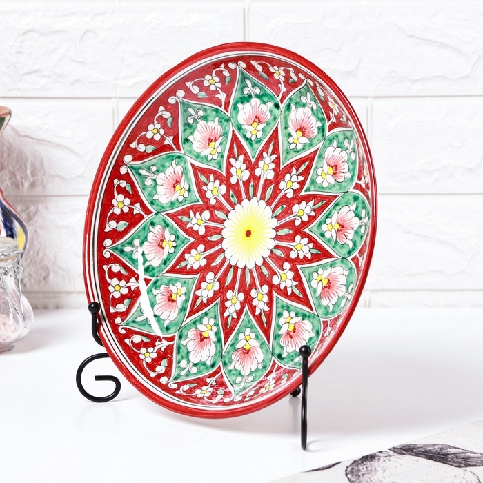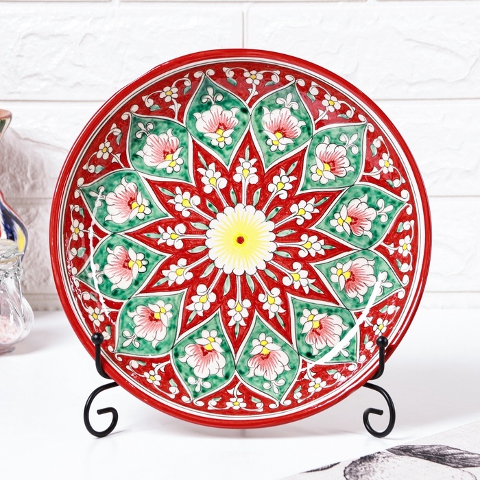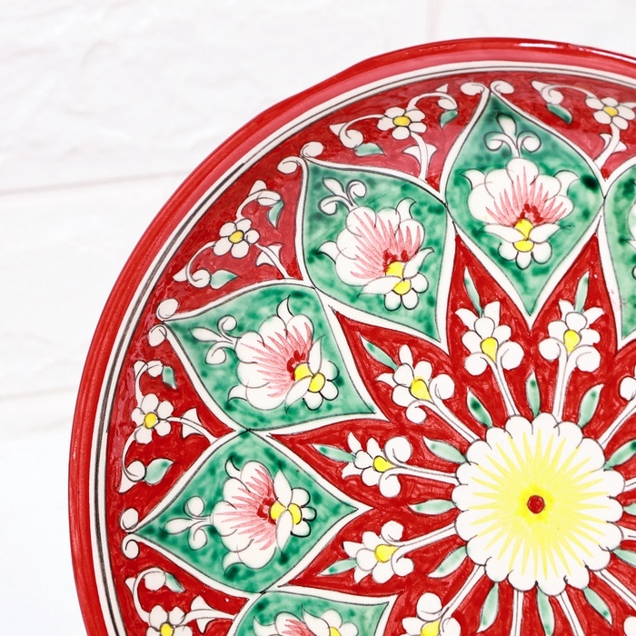 Ляган Риштанская Керамика "Цветы", 25 см, красный