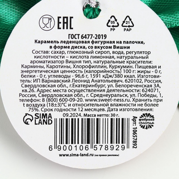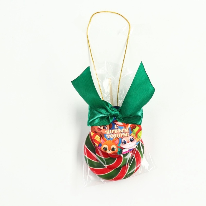 Леденец ёлочная игрушка диск "С новым годом" вкус вишня 30 г
