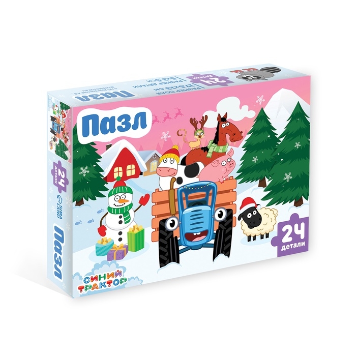 Пазл "Украшаем ёлочку", Синий трактор 24 элемента, большая коробка