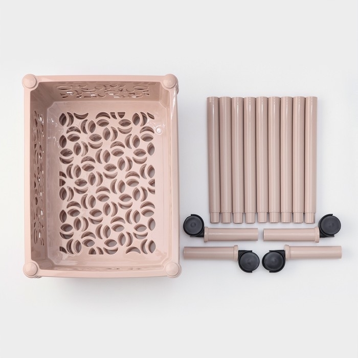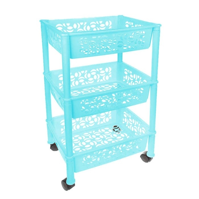 Прочный пластмассовый корпус стеллажа выдерживает высокую нагрузку, а четыре колёса обеспечивают мобильность изделия. Также этажерка обладает повышенной устойчивостью за счёт углового расположения опор. Удобная, компактная, но в то же время вместительная, она прекрасно впишется в пространство любого помещения. Изделие можно расположить на кухне, в прихожей, ванной, гостиной, детской или спальне.