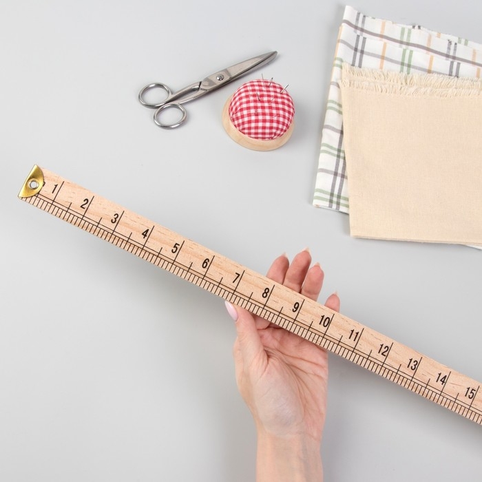 Деревянный метр незаменим для измерений длины на ткани. Он не гнётся, что позволяет точно произвести замер. Инструмент пригодится при работе с выкройками и чертежами.