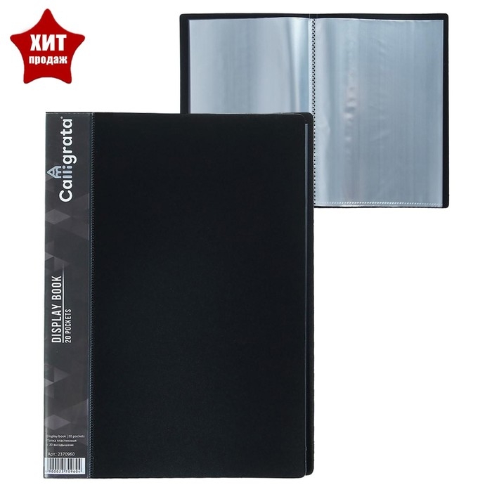 Папка с 20 вкладышами А5, 500 мкм, Calligrata, 9 мм, карман на корешке, черная