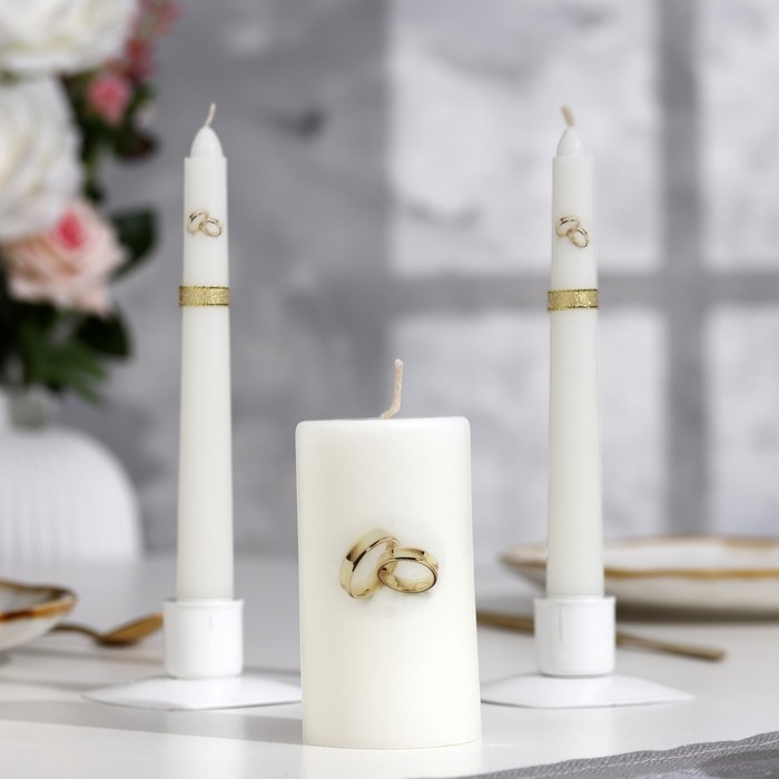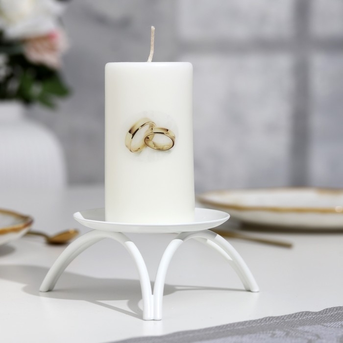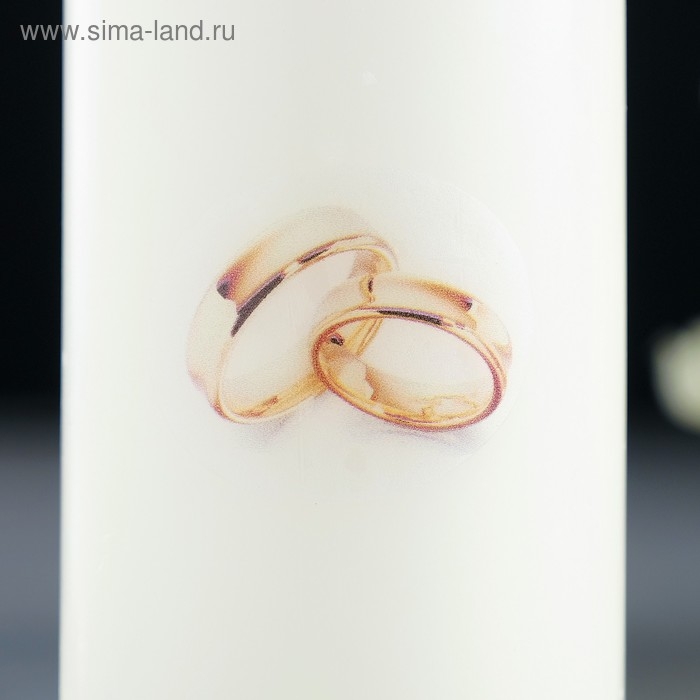 Свеча-цилиндр свадебная "Обручальные кольца", 5х9,5 см, белая, домашний очаг, ручная работа