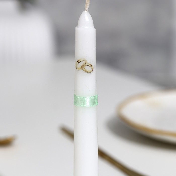 Набор свечей свадебных "Совет да любовь с розой"мятный:родительские 1,8х15см,очаг 5х9,5см
