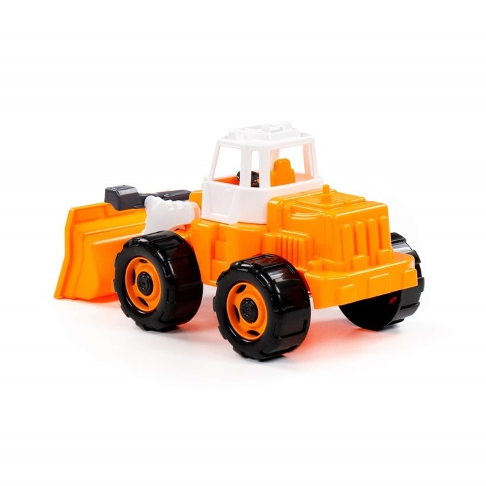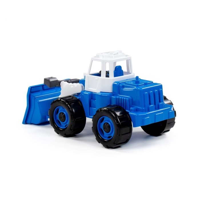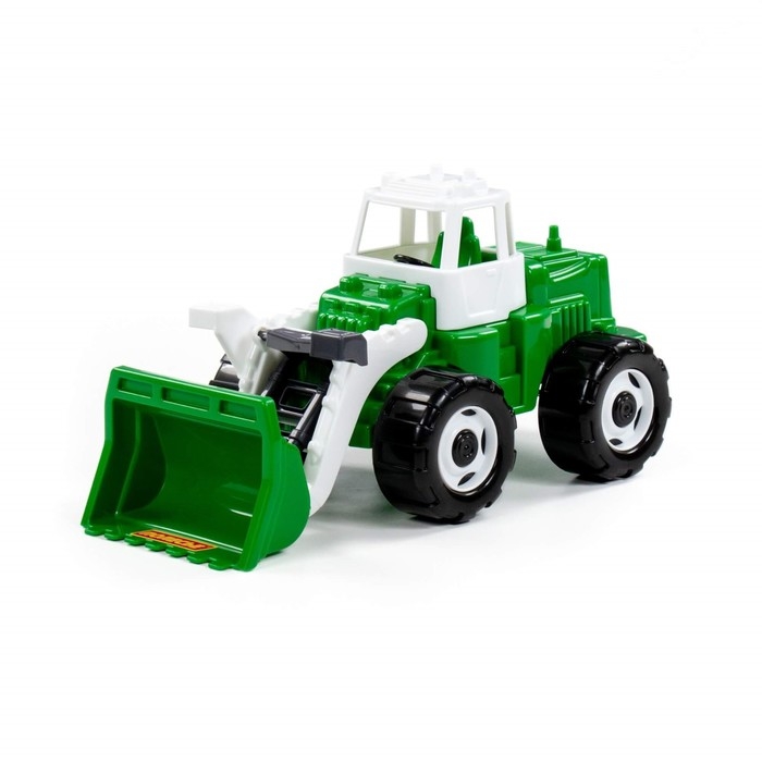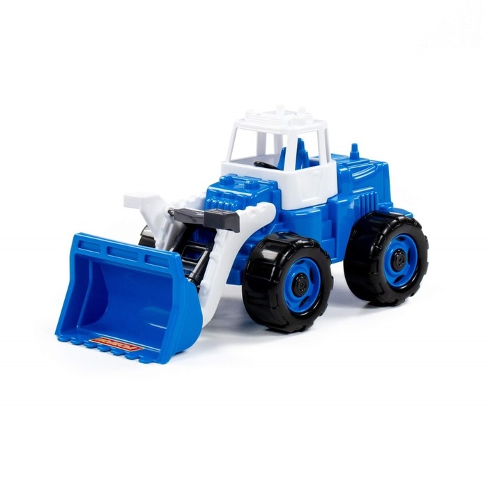 Трактор-погрузчик — незаменимая техника на любой ферме и стройке. Она оснащена широким ковшом для копания песка и мелких камушков. Такая игрушка подойдёт для развлечений дома и на улице.