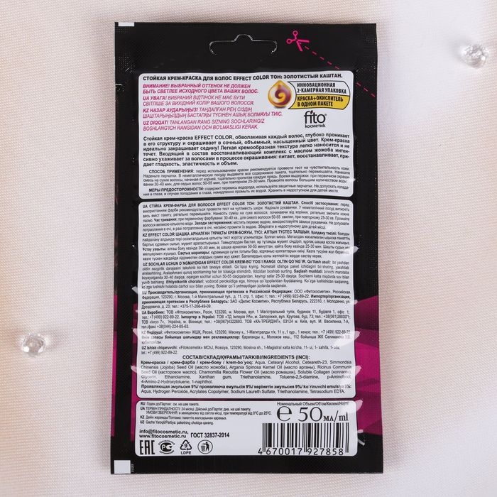 Cтойкая крем-краска для волос Effect Сolor тон золотистый каштан, 50 мл