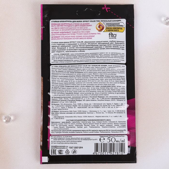 Cтойкая крем-краска для волос Effect Сolor тон пепельный блондин, 50 мл