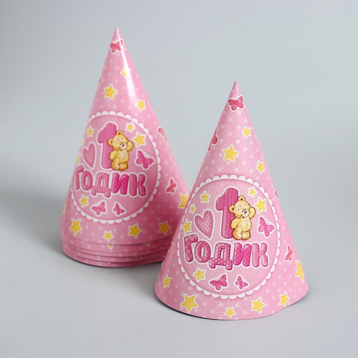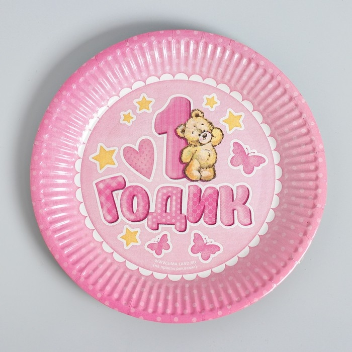 Набор бумажной посуды одноразовый С днём рождения. 1 годик», 6 тарелок, 6 стаканов, 6 колпаков, 1 гирлянда