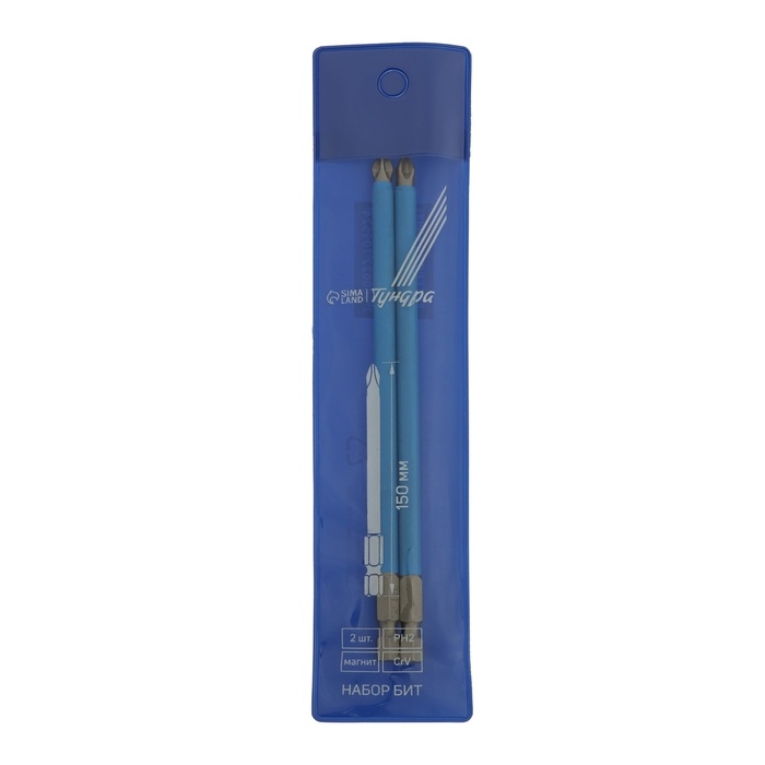 Биты ТУНДРА, намагниченные, сталь CrV, PH2 х 150 мм, 2 шт.