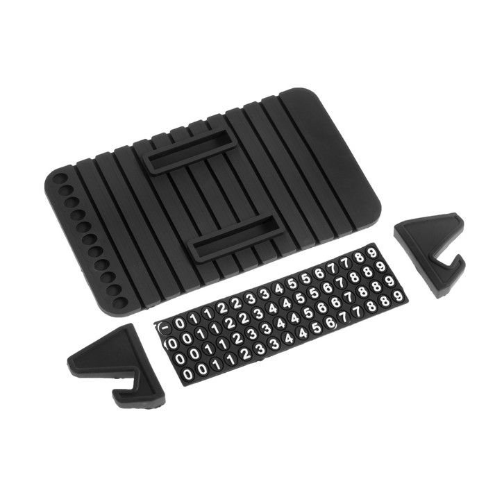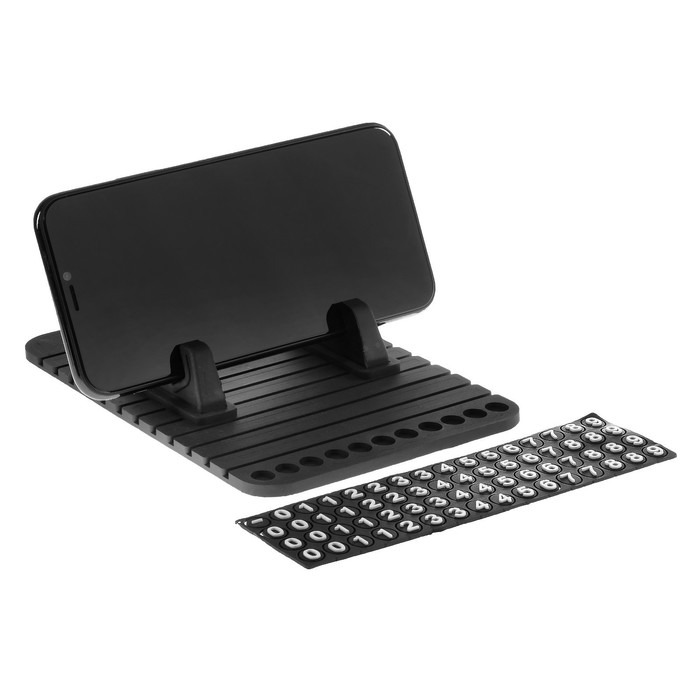 Коврик противоскользящий с подставкой под телефон и номером телефона, черный