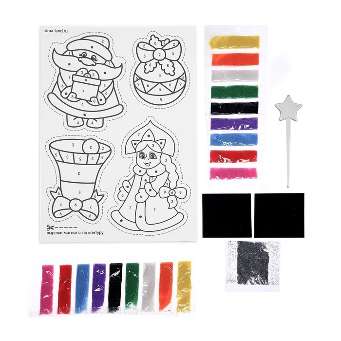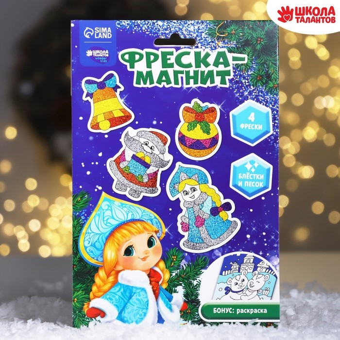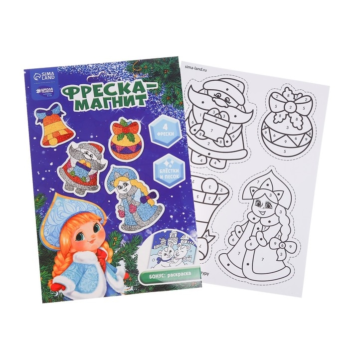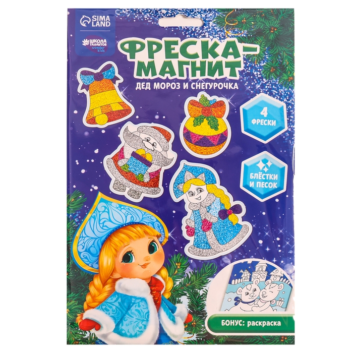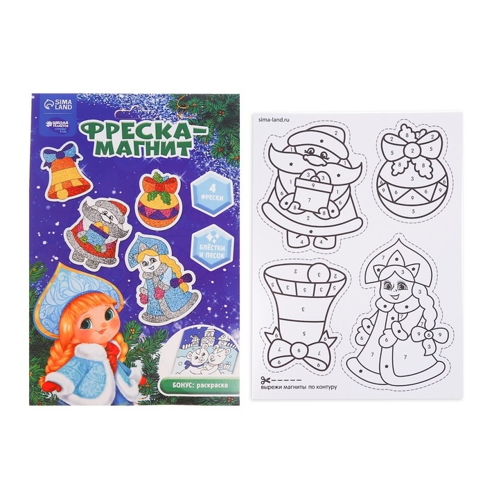 Магнит - фреска своими руками на новый год «Дед Мороз и Снегурочка», 4 шт, новогодний набор для творчества