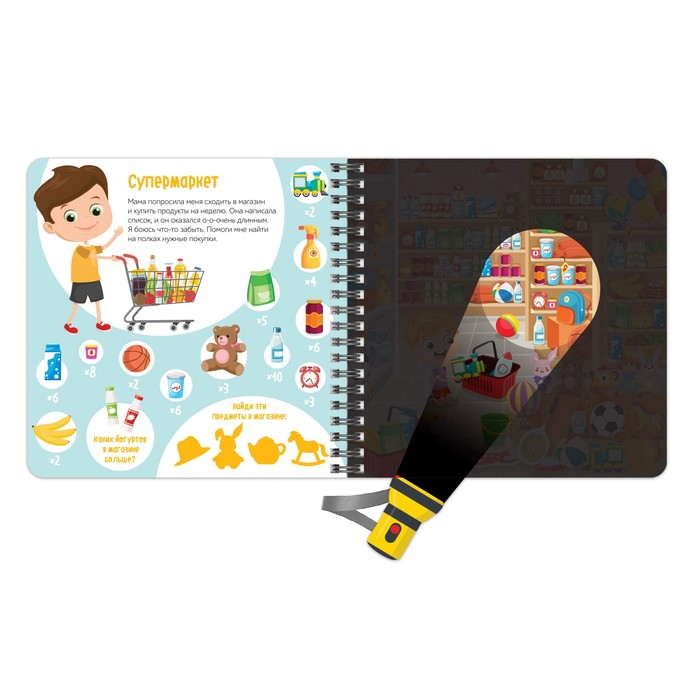 Секретная книга с волшебным фонариком «Найди и сосчитай с Вилли» привлекает внимание ребёнка свое необычной задумкой!